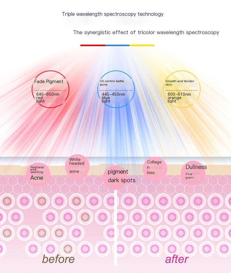Experience the magic of different wavelengths as they penetrate deep into your skin, promoting collagen production and enhancing your natural glow. The soothing effects of the mask not only help to reduce fine lines and wrinkles but also improve your overall skin texture.